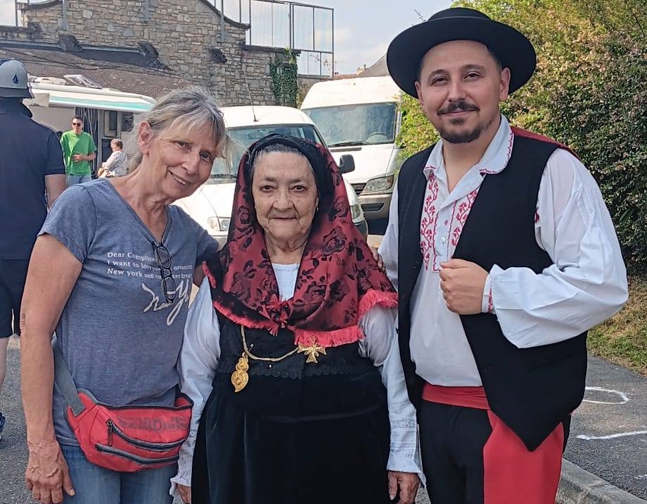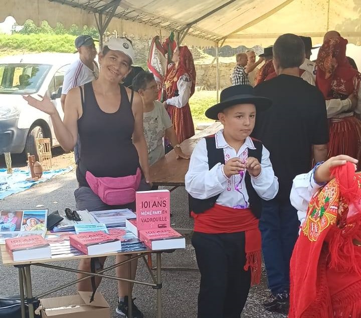 Sur le stand, la rencontre se fait, une rencontre sous le signe du folklore. Fiona écrit et décrit : «On a été trop bien reçus, on devait être à la foire à 14h00 et c’est à 15h30 qu’on est arrivé. Jérémy nous avait gardé la place à l’ombre. Puis on a eu droit au folklore portugais, on a bien discuté avec eux en leur racontant l’histoire de mémé qui s’est rendu jusqu’au Minho, leur région».