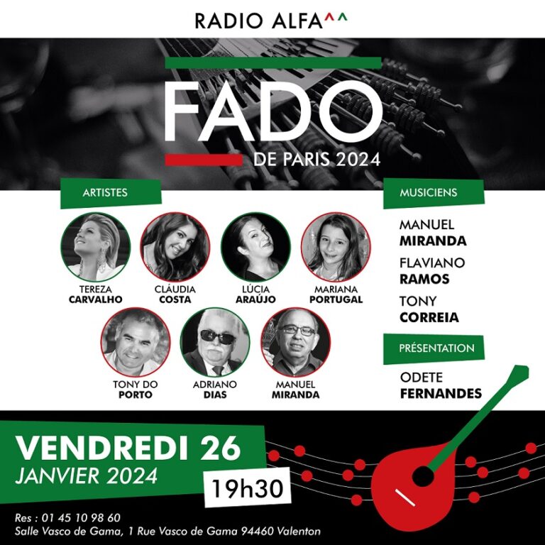 A Rádio Alfa vai organizar a 10ª edição do já habitual concerto “Fado de Paris”, na sexta-feira, dia 26 de janeiro, a partir das 19h30, na Sala Vasco da Gama, em Valenton, precisamente no edifício onde estão os estúdios da rádio.