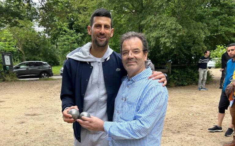No dia seguinte deste jogo-maratona, ‘Djoko’ foi – como tem ido todos os anos – jogar à Petanca na Porte d’Auteuil. José Sousa Moura, português, Presidente da Associação Portuguesa de Courbevoie, é um “habitué” destes encontros matinais de Petanca do domingo de manhã no Bois de Boulogne e já encontra Novak Djokovic há vários anos. “Djoko, desta vez vais jogar comigo” lançou o Português. “Desta vez vou jogar contra ti” retorquiu com cumplicidade o jogador de ténis.