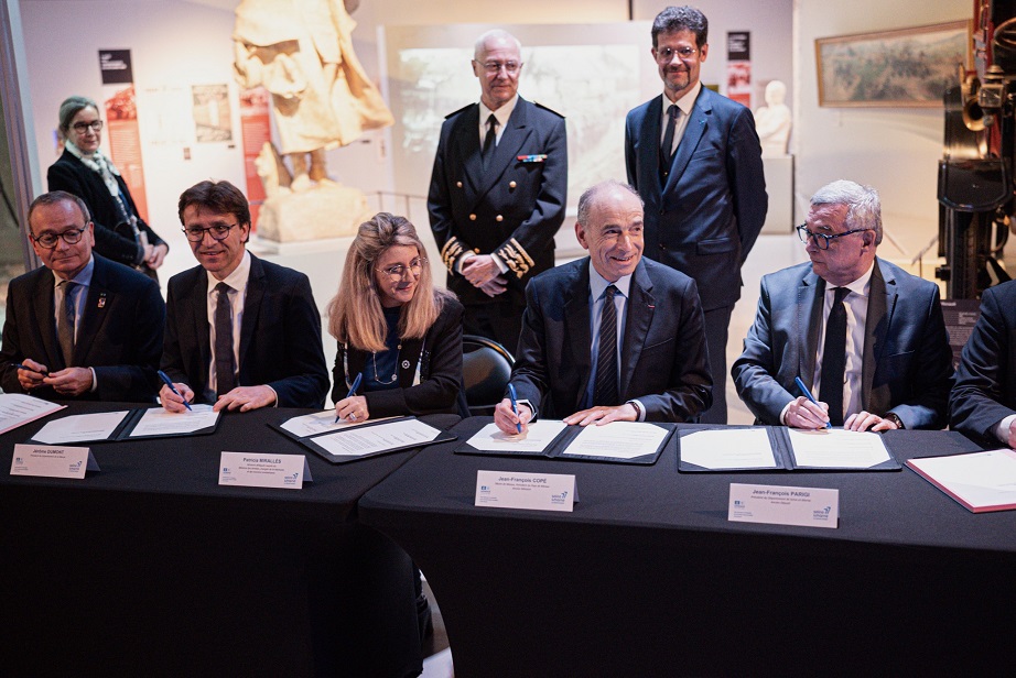 La journée s’est conclue par la signature de l’accord-cadre par Jérôme Dumont, Président du Département de la Meuse, Nicolas Fricoteaux, Président du Département de l’Aisne, Jean-François Parigi, Président du Département de Seine-et-Marne, Evence Richard, Directeur de la Mémoire, de la Culture et des Archives du Ministère des Armées, en présence de Jean-François Copé, Président de la Communauté d’Agglomération du Pays de Meaux et de Patricia Miralles, Ministre déléguée auprès du Ministre des Armées, chargée de la Mémoire et des Anciens combattants.