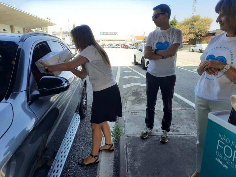 Os membros da AILD abordavam os carros, deixavam umas palavras de reconforto, desejavam boa viagem e entregavam um saco com produtos oferecidos pela Saborosa, Minipreço de Almeida, Intermarché de Vilar Formoso, Amostra de Letras, Cisterdata, Quinta do Terreiro, Ramirez, Vieira de Castro e Super Bock Group. “A adesão dos nossos patrocinadores é outra evidência de quanto a nossa credibilidade tem vindo a crescer. Várias empresas portuguesas consideram que a AILD é o parceiro certo para promover os seus produtos” explicou Cristina Passas ao LusoJornal, enquanto ia explicando com sorriso, aos carros que passavam, que era o “goûter” da tarde.