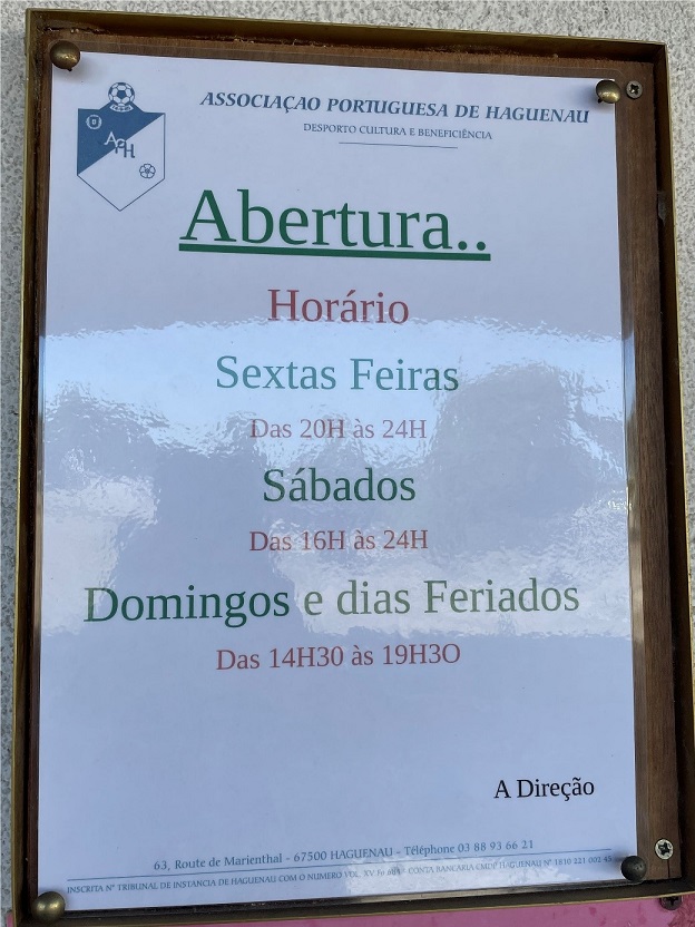 Mais informações também podem ser encontradas na página Facebook “Association Portugaise de Haguenau”. O clube está localizado em 63 route de Marienthal; em Haguenau.