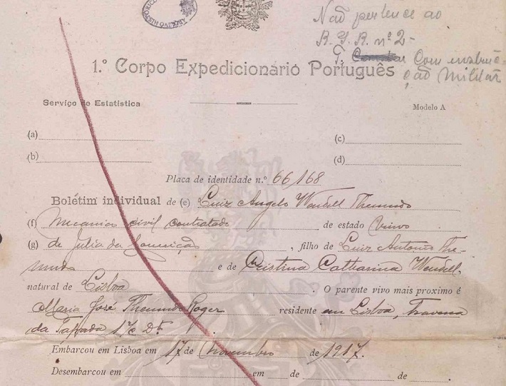Les Archives départementales du Finistère détiennent une photographie datée de 1917 du soldat du CEP Luiz Angelo Wendell Themudo. Le nom de famille maternel Wendell laisse envisager une ascendance autre que portugaise. Le 7 avril 1919 l’acte de mariage, de Luiz Themudo avec Jeanne Marie Madeleine Morio, le dit sergent automobiliste. Natif de Vila Real de Santo António, il est dit veuf de Júlia da Conceição et fils de Luiz António Themudo et Cristina Catharina Wendell.