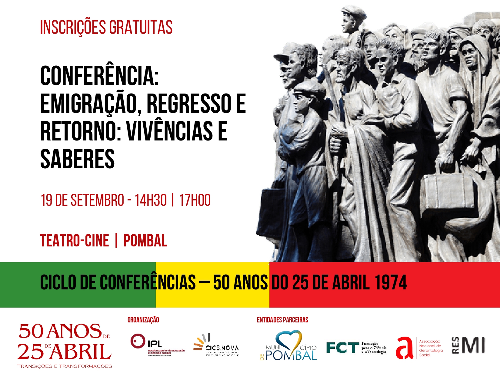 O Polo de Leiria do CICS.NOVA, sediado na Escola Superior de Educação e Ciências Sociais, promove no dia 19 de setembro, em Pombal, a conferência “Emigração, regresso e retorno: vivências e saberes”.