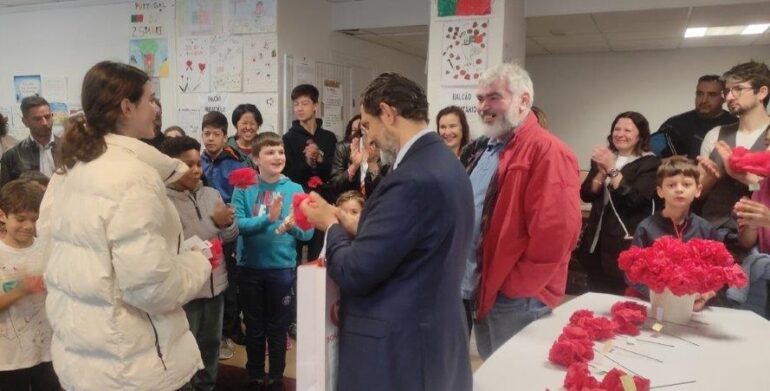 Durante quase três meses, nas escolas onde se ensina a língua portuguesa na região de Lyon, nos vários níveis, desde a primária ao colégio, os alunos preparam uma exposição sobre o 25 de Abril, para comemorarem também os cinquenta anos da Revolução dos Cravos.