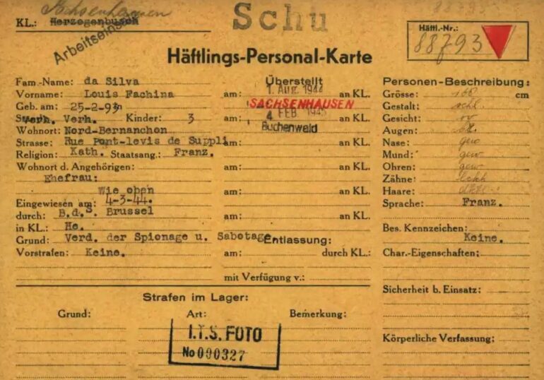 Un panneau porte son nom francisé, Louis da Silva, à Mont-Bernanchon, pour rappeler qu’il a été Résistant, arrêté en décembre 1943, puis déporté au Camp de concentration allemand de Buchenwald, d’où il est libéré en mai 1945. Il est passé par un camp allemand en Hollande, avant deux camps en Allemagne, selon les archives Arolsen. Issu de ces archives allemandes, une carte de prisonnier le nomme Louis Fachina da Silva, le dit interné pour espionnage et sabotage et donne des éléments de description physique.