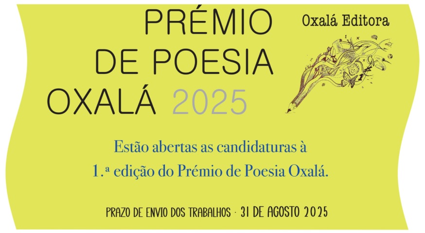 O prazo para envio de originais concorrentes ao Prémio de Poesia Oxalá 2025 já começou e decorre até ao dia 31 de agosto. O prémio visa selecionar trabalhos inéditos no domínio da poesia, apresentados por portugueses e lusodescendentes residentes no estrangeiro.
