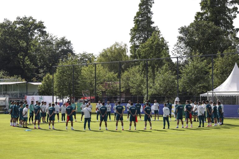 L’équipe du Portugal a commencé hier les préparatifs pour le duel de lundi contre la Slovénie, en huitièmes de finale de l’Euro 2024 de football, avec tous les joueurs disponibles pour s’entraîner à Marienfeld, en Allemagne.