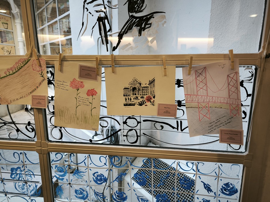 A artista plástica Nathalie Afonso fez uma intervenção nestes três estabelecimentos onde falou do 25 de abril e deu aos alunos noções de desenho. Depois, os alunos elaboraram desenhos e textos que agora estão expostos na Chancelaria do posto consular.