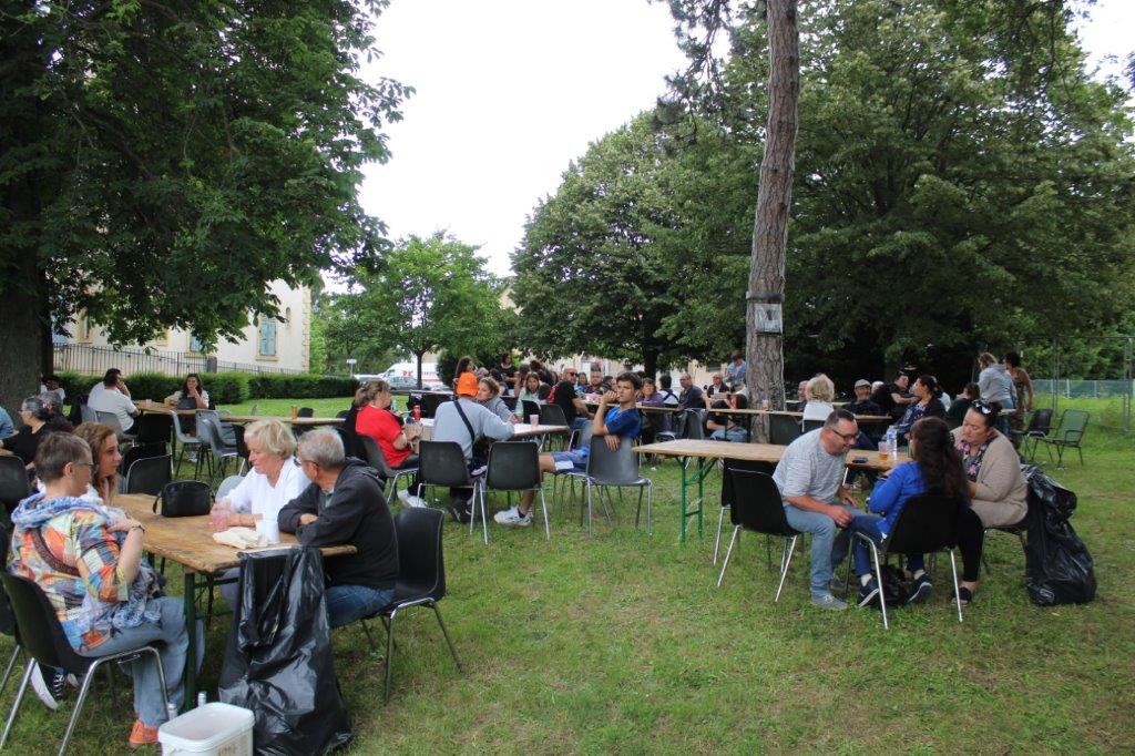 A partir das 11h00, toda a equipa da associação ACPF estava presente, para a preparação da ementa. À sombra das árvores do Parque da Europa, todos puderam apreciar uma boa sardinha assada, frango no churrasco e até o tradicional e saboroso Caldo Verde, confecionado pelas senhoras da associação.