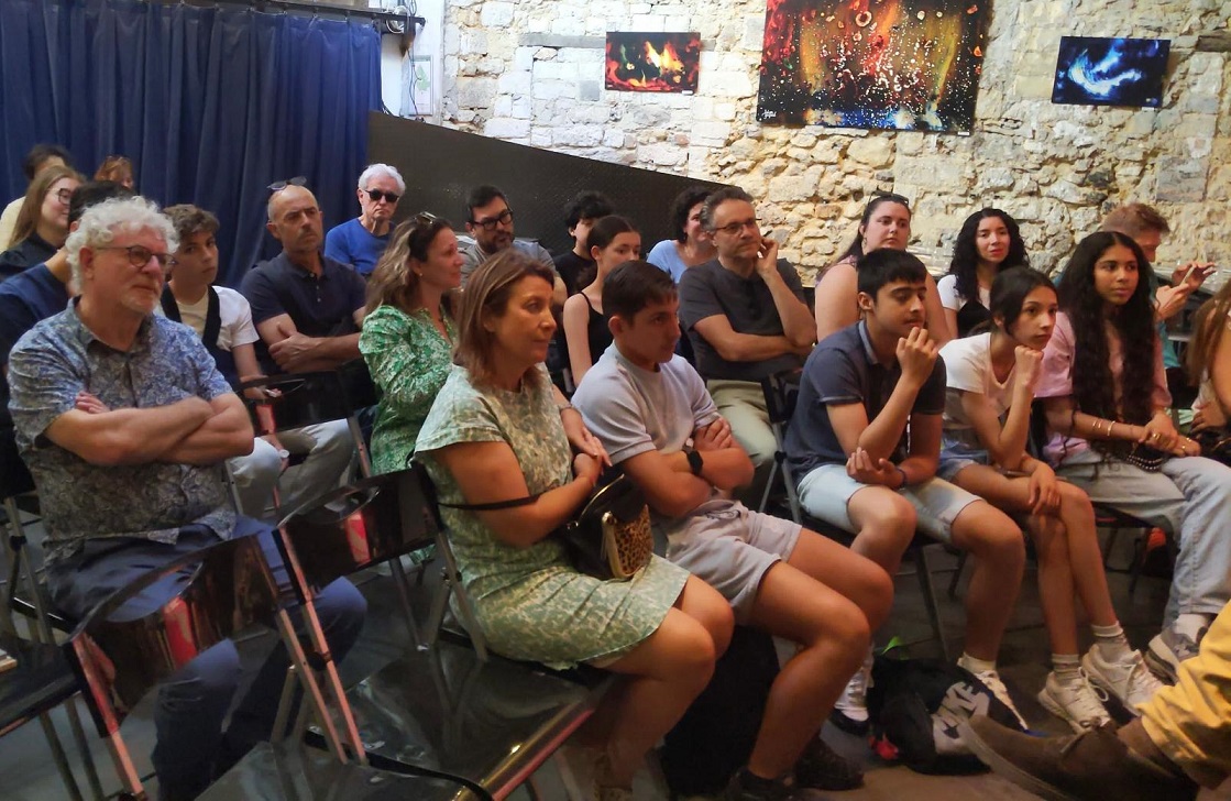Entre alunos, pais, professores e membros das associações portuguesas, o público rondou as 50 pessoas, enchendo a sala reservada para o efeito. Os alunos colocaram ao autor questões previamente trabalhadas com os professores, as quais versaram sobre a obra e ao percurso de vida. De forma descontraída, Gonçalo M. Tavares exortou os alunos a dedicarem-se à escola, sublinhando que a escola não prejudicava os seus tempos livres ou os seus gostos. Dava-lhes, antes, um maior espaço de liberdade, o que exemplificou de forma divertida e descomplexada.