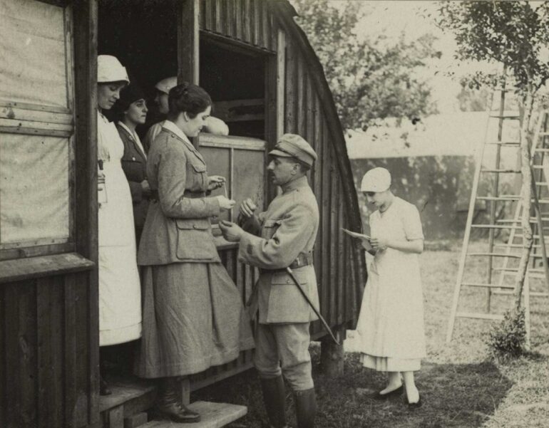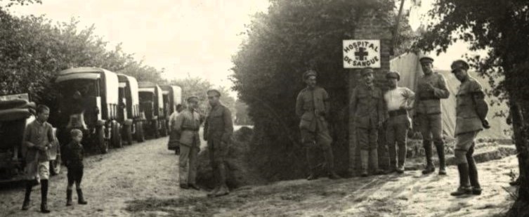 Blessé en service en juillet 1918, il a été envoyé à l’hôpital stationnaire n°39 de Desvres, puis à l’HS 8. En septembre, il a occupé le poste de Chef de la Colonne automobile de transport de blessés et est devenu responsable de l’HS 8 d’Herbelles en octobre 1918.