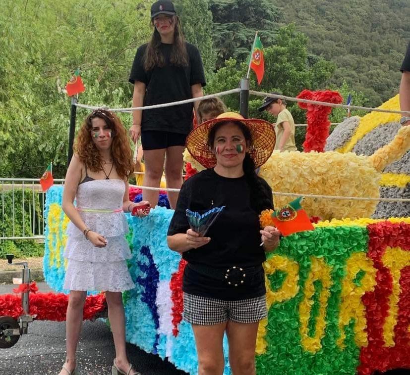 L’association n’existe que depuis 7 mois, «nous avons organisé des repas/fêtes dans le village d’à côté, à Salelles-du-Bosc, nous y louons une salle pour nos repas. Au mois de juillet nous avons participé à la fête du village, style marches populaires de Saint Antoine à Lisboa, cela s’appelle les Cavalcades. On a décoré et fait défiler un char aux couleurs du Portugal».