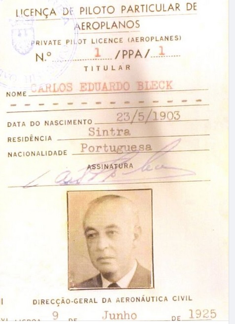 De la bibliographie de Carlos Eduardo Bleck signalons le fait qu’il a été le premier pilote civil portugais, ayant effectué son premier vol à 15 ans, à l’âge de 19 ans ayant rejoint, le 21 novembre 1922, la Escola Militar de Aviação. En 1925 il décroche le premier diplôme portugais de l’aviation civil obtenu dans une école militaire.