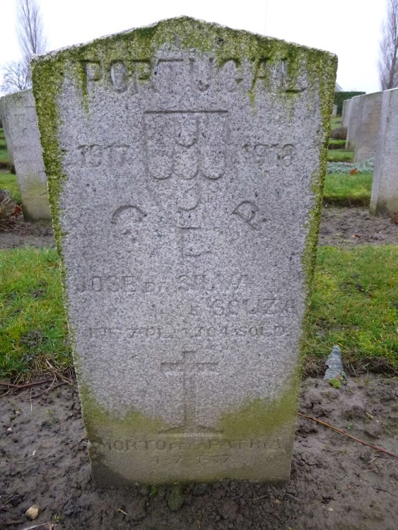 José da Silva e Sousa faisait partie du Bataillon 7, matricule 1.304. Célibataire, il était fils d’Augusto da Silva et Ângela de Jesus. Il est né à Milagres (Leiria). Il embarque à Lisboa, le 20 janvier 1917. Blessé le 4 juillet 1917, transporté au Casualty Clearing Station, il meurt le même jour.