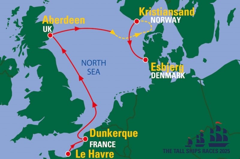 Rappelons que la «The Tall Ships Races» est une course qui conduit, cette année, ses voiliers du Havre jusqu’à Esbjerk au Danemark, en passant par Dunkerque, Aberdeen en Ecosse et Kristiansand en Norvège, la compétition prenant fin le 9 août.