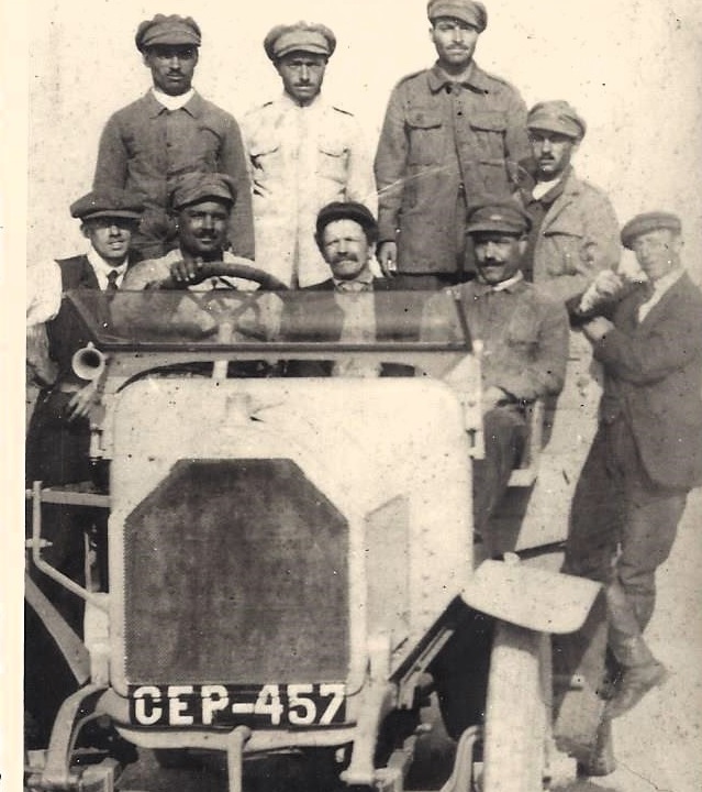 Cette photo visualise des anciens soldats britanniques et portugais qui travaillaient pour les Commissions respectives des Sépultures de Guerre. Leur véhicule est immatriculé CEP pour Corps Expéditionnaire Portugais. Elle date des années 1920. Certains hommes portaient des tenues civiles, d’autres des tenues de travail.
