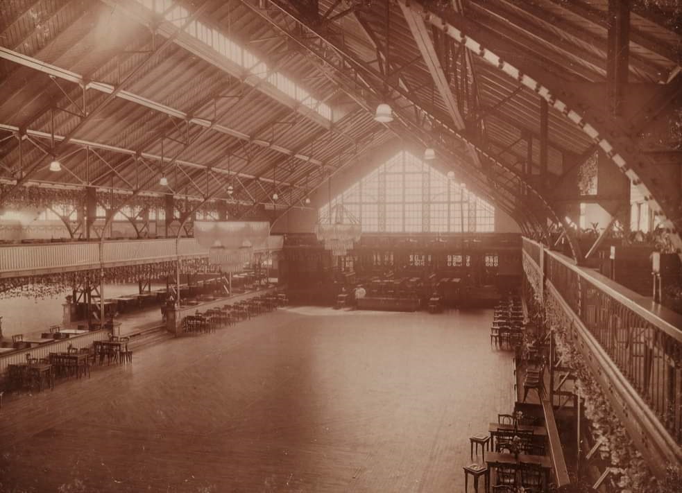 Dans une photo ancienne, on voit la salle où jouait le Hockey Club du Fresnoy, des tables à manger et des chaises entourent le ring où se déroulaient les matchs de Rink Hockey et de catch… autres temps !