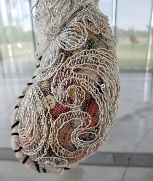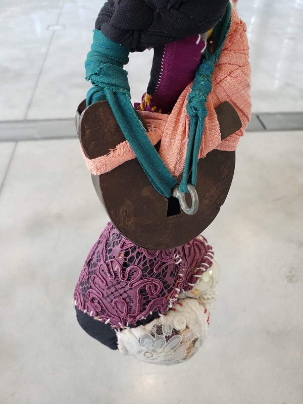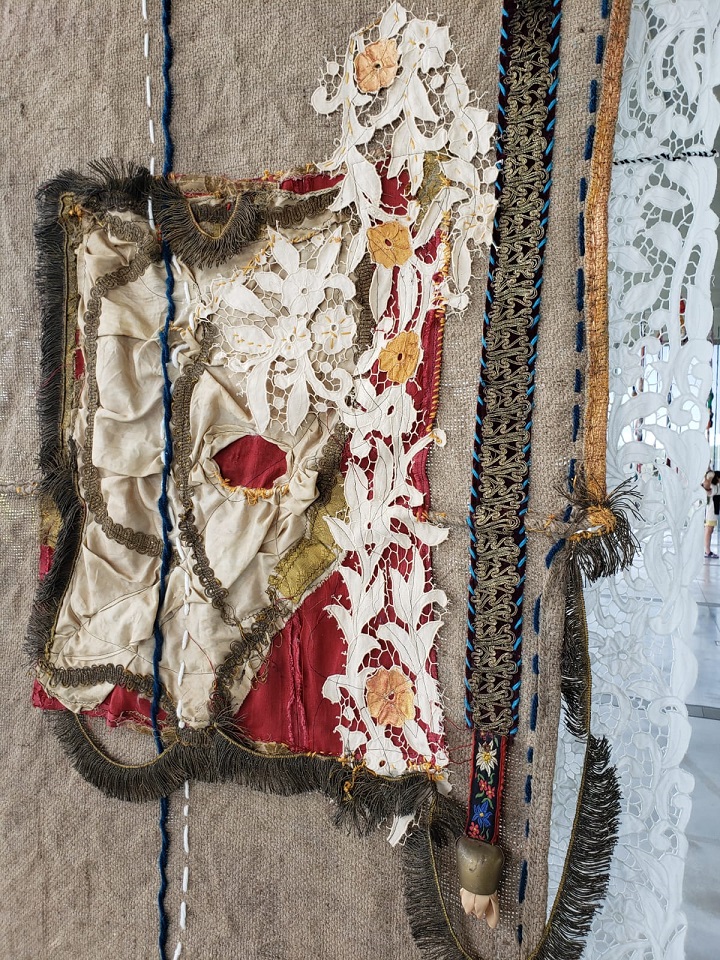 Par cette œuvre, Sónia Gomes rend hommage à la fois, à sa grand-mère couturière mais aussi aux petites mains anonymes qui travaillent le textile dans sa ville, mais aussi ailleurs, ainsi qu’à tous les travailleurs de la mine de sa ville.