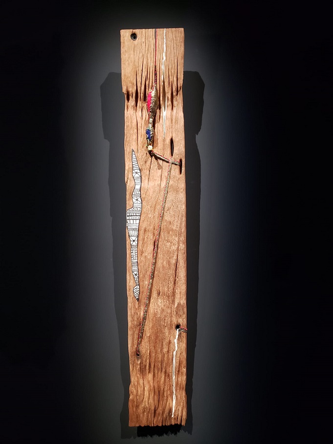 Dans chaque corde qui pend du haut de la pièce, des éléments se cachent… au visiteur de découvrir une véritable clé… peut-être, aussi, un appel au visiteur pour qu’il découvre sa clé, la clé pour comprendre l’œuvre ? L’artiste admet que chacun puisse interpréter, à sa manière, son œuvre. On trouvera aussi un cadenas, un petit ourson, un…