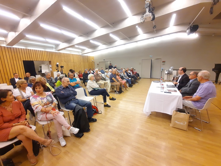 A sessão de apresentação encheu a Casa de Portugal e o Diretor da instituição lembrou que a apresentação tem lugar no quadro das comemorações dos 50 anos do 25 de Abril. “A Casa de Portugal insere-se num movimento pacifista que, entre as duas guerras, fundou a Cité universitaire internationale de Paris. Os seus fundadores decidiram construir uma estrutura para as relações humanas, para a paz. Eles pensaram que fazendo encontrar estudantes estrangeiros vindos do mundo inteiro, eles compreenderão que, apesar de origens diferentes, não são assim tão diferentes” lembrou João Costa Ferreira. “Neste ano em que celebramos os 50 anos da Revolução dos Cravos, quero salientar a interdependência que existe entre o projeto de paz da Cité internationale universitaire de Paris e a liberdade que os Portugueses conquistaram há exatamente 50 anos. Porque é difícil, e até impossível, de imaginar um mundo de paz sem liberdade, porque é difícil dialogar com censura. É por isso que todos os eventos que são organizados aqui por ocasião dos 50 anos do 25 de Abril, são tão importantes para nós”.