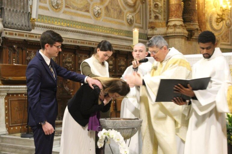 O Reitor da Basílica, Yves Guerpillon, presidiu a cerimónia onde duas jovens optaram por receber o Batismo cristão católico, após uma formação de 2 anos onde a descoberta do cristianismo e a fé em Deus, as levou a decidirem dar este passo espiritual.
