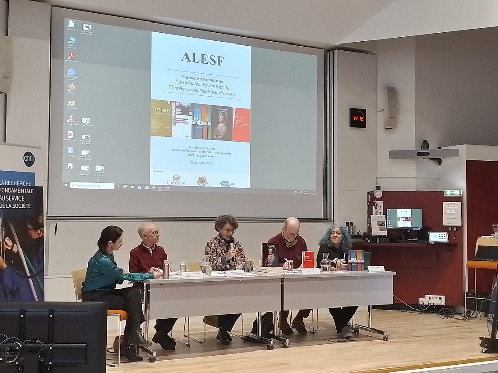 Le 28 novembre, la Maison des Sciences de l’Homme de l’université de Poitiers a accueilli la première rencontre de l’Association des Lusistes de l’Enseignement Supérieur Français (ALESF). Cet événement s’est tenu en présence de la Direction de l’UFR Lettres et Langues, des représentants des unités de recherche CRLA Archivos et FORELLIS de l’Université de Poitiers, d’Isabel Sebastião, Coordinatrice de l’enseignement de portugais en France de l’Institut Camões, et d’Helena Melchionna, en représentation du service de coopération éducative de l’Ambassade du Brésil à Paris.