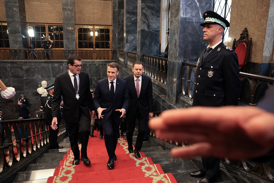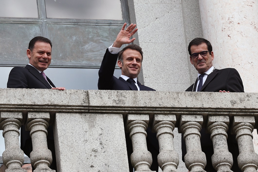 Após a cerimónia e acompanhado do Primeiro-Ministro português, Emmanuel Macron visitou a principal varanda do edifício e dali avistou a Avenida dos Aliados, considerada um dos “cartões de visita” da cidade, de onde saudou um grupo de crianças mascaradas que empunhavam bandeiras francesas e portuguesas, e que gritavam “bom dia e bom carnaval”.