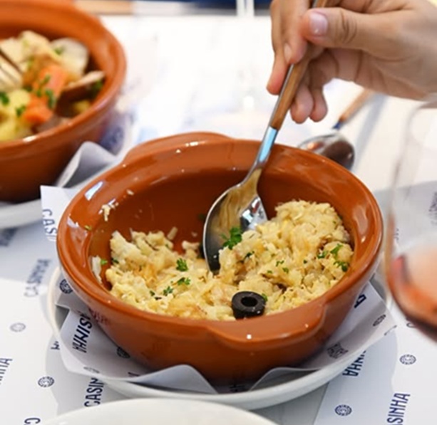 Com uma estética marcada por azulejos, paredes caiadas e mesas apertadas em madeira, o restaurante recria a atmosfera de uma típica tasca portuguesa. No menu figuram clássicos como bifanas, bacalhau à Brás, polvo à lagareiro, amêijoas à Bulhão Pato, chouriço flambado ou rissóis de camarão, servidos com vinho português, cerveja artesanal da casa ou bebidas de autor, como o Ginjinha Tonic.