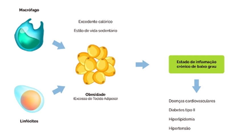 Este excesso de gordura vai provocar uma resposta imunitária por parte de macrófagos e linfócitos que vão produzir substâncias pró-inflamatórias, promovendo assim um estado de inflamação constante.