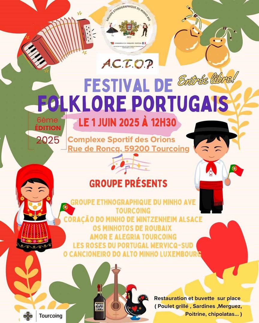 Dans la région lilloise, le 1er juin il y a un choix à faire sur le F. Le F de Football pour assister au Tournoi de Roubaix «Pouss’Cup» ou plutôt le F de Folklore lors de la 6ème édition du Festival Folklorique Portugais organisé par le Groupe Ethnographique du Minho e Ave de Tourcoing (GEMA) au Stade des Orions de Tourcoing.