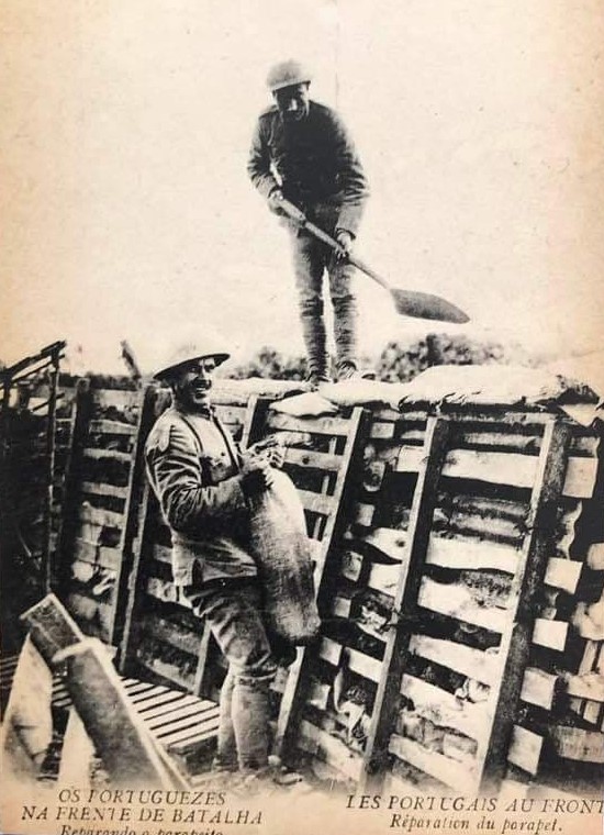 Les Sapeurs étaient chargés de construire et de réparer des abris pour mitrailleuses, mortiers, postes de commandement, de reconstruire des tranchées, d’entretenir les routes, construire des drains… Le photographe de guerre Arnaldo Garcez a d’ailleurs pris, pendant la I Guerre mondiale, des photos de soldats du Génie en train de construire et réparer une route dans le secteur de Fauquissart, Laventie.